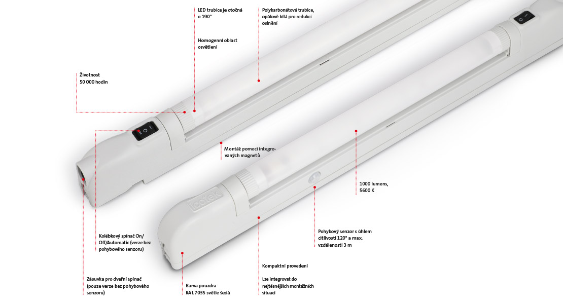 Vysoce svítivé LED s 1050 lumeny nabízí ?ivotnost 50 000 hodin. Opálově bílá polykarbonátová trubice poskytuje homogenní, neoslňující plo?né světlo.