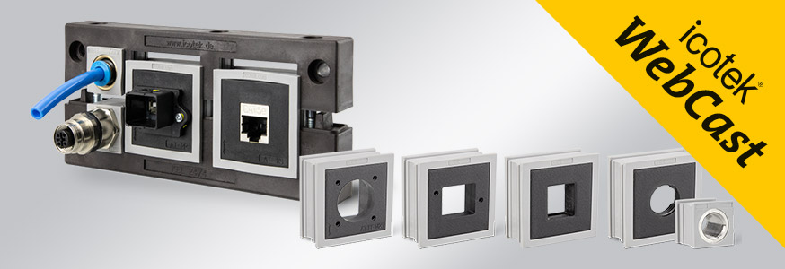 Das Adapter-System IMAS-CONNECT? von icotek ist ein durchg?ngig modular aufgebautes Tüllensystem zur Aufnahme von metrischen Steckverbindern, PushPull-Modulen, Keystone-Modulen, Schlauchverschraubungen, Druckausgleichselementen u.v.m.. Konfektionierte sowie nicht konfektionierte Leitungen bzw. Schl?uche k?nnen problemlos und platzsparend eingeführt werden. Durch den Einsatz des Adapter-Systems wird die teilbare Kabeleinführung zum Hybridsystem. Im WebCast zeigen wir Ihnen die unterschiedlichen Anwendungsm?glichkeiten unseres IMAS-CONNECT? Systems und wie Sie ganz einfach ihre Kabeleinführung zum Hybridsystem machen!