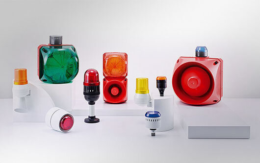Signalleuchten, Sirenen und Hupen sowie kompakte und modulare Signals?ulen, explosionsgeschützte Signalger?te sowie Telefone zur Industrieanwendung.
