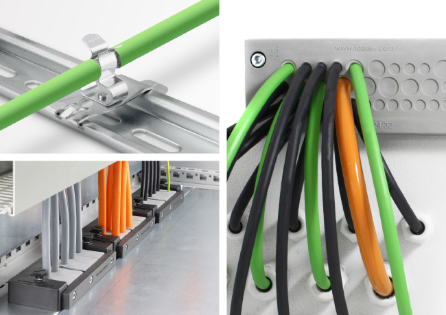 überall wo elektrische Leitungen, Wellschl?uche, pneumatische oder hydraulische Schl?uche oder Lichtwellenleiter in eine Maschine, Anlage oder einen Schaltschrank eingeführt, abgedichtet oder gegen Zug entlastet werden, sind icotek-Systeme im Einsatz.