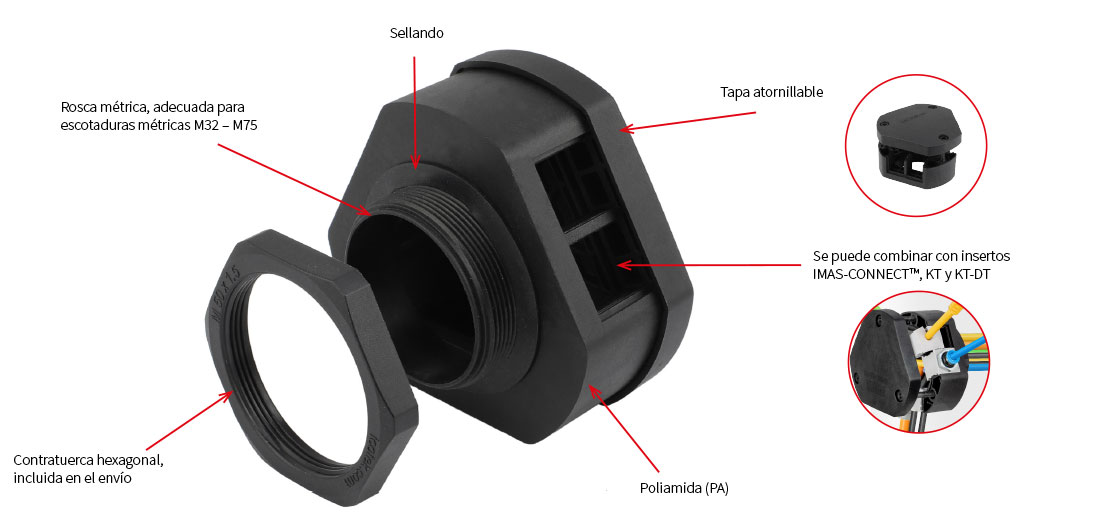 Pasamuros partido 360°, M32-M75, IP54
