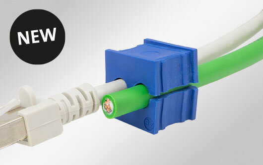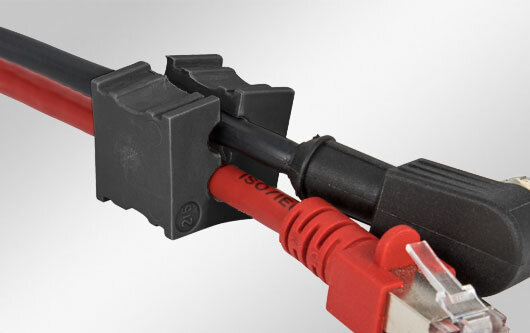 Pasacables ranurado en forma de U para cables con y sin conectores (con un rango de diámetro de 4 - 11 mm). Montaje sin herramientas.