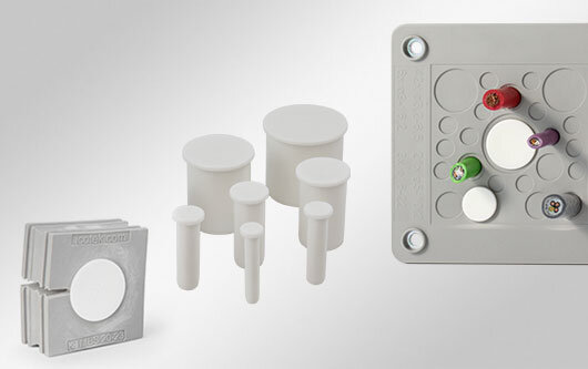 Tapones para sellar insertos de cables ranurados KT y QT, que no se utilicen.