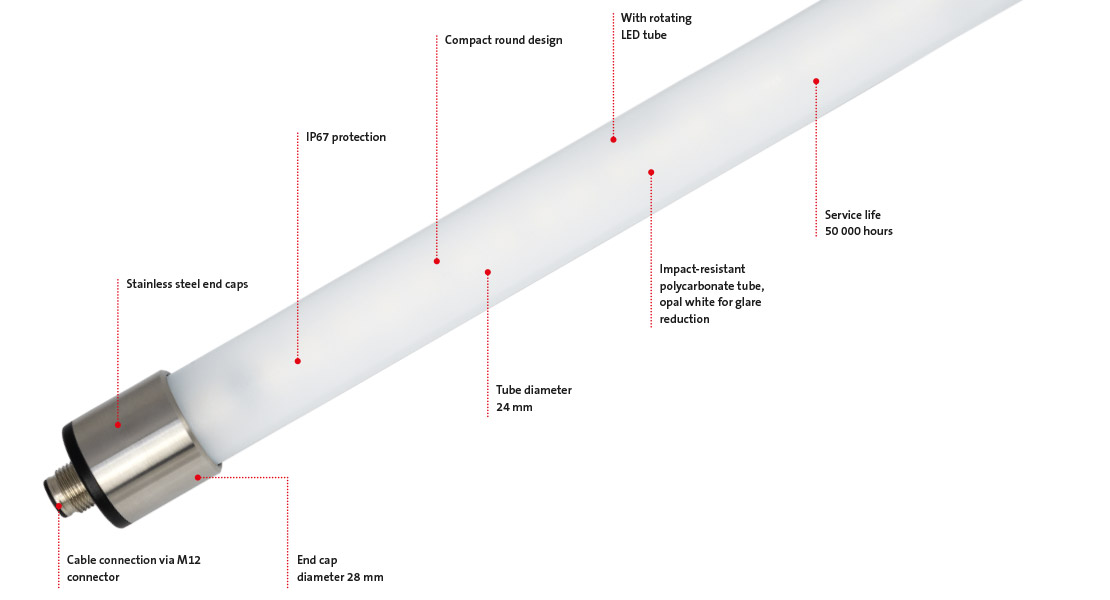 TUBE -valaisin tarjoaa tehokkaan valaistuksen koneille ja laitteille. Varustettu standardi M12-liittimell?.