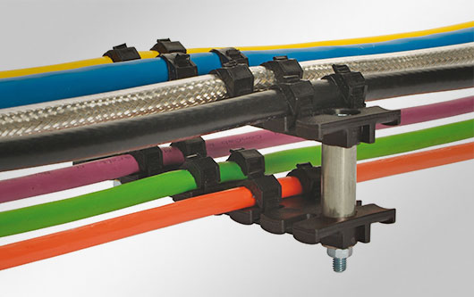 Avec seulement un seul composant, vous pouvez poser des cables, gaines et tuyaux jusqu'à 20 mm de diamètre et soulager la tension en conditions statique et dynamique. Les conducteurs sont facilement fixés avec des colliers de serrage, la contre-dépouille offre une bonne prise sur le profil de chaque dent du peigne.