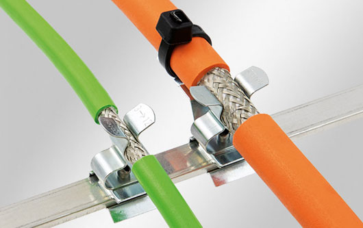 使用這一代銅排屏蔽夾時,夾子位于母線上方。這就節(jié)省了電纜走向上的空間。只要電纜屏蔽必須與接地電位連接,就可以使用EMC屏蔽夾。屏蔽接地夾極易使用并且可以有效地屏蔽電磁干擾。
