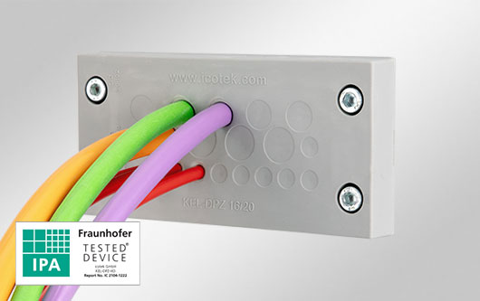 所有適用潔凈室的易科智連電纜引入系統(tǒng)都通過(guò)了弗勞恩霍夫 IPA 測(cè)試和認(rèn)證,并符合 ISO 14644-1 的 1 級(jí)認(rèn)證 !