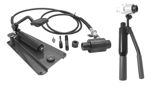 普遍適用的單級腳踏泵內(nèi)置的固定工作壓力為450 bar泄壓閥。 適用于所有易科智連圓形、矩形和方形開孔模具。 保持雙手在鈑金沖頭的精確位置,尤其是當(dāng)使用較大的鈑金開孔時。