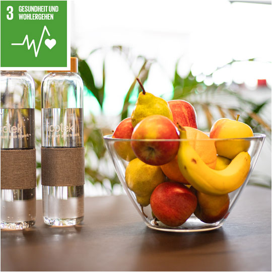 • Wir motivieren unsere Mitarbeitenden mit dem Fahrrad statt mit dem Auto zur Arbeit zu kommen (Jobrad-Angebot). Dies spart nicht nur Ressourcen, sondern zahlt auch in die Gesundheit ein