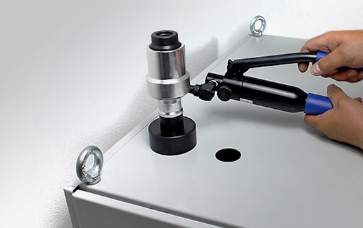 易科智連現(xiàn)在可以提供一種沒有軟管的手動液壓沖壓模具,它可以在直角,矩形和圓形的軟管進行快速的開孔。這種開孔可以精確匹配易科智連大部分切口尺寸。當(dāng)你需要開幾個孔,這種手動液壓工具比人工更加便捷。DIN-RC 1和DIN-RC 2切割裝置可用于切割多種DIN導(dǎo)軌和銅排。