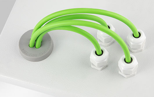 使用薄膜形態(tài)的電纜引入底板,線纜、氣動和液壓軟管或者光纖可以快速地引入到控制柜、面板或者機(jī)器內(nèi),密封等級高達(dá)IP68(根據(jù)EN 60529)和UL 4X*(根據(jù)UL50E)。易科智連電纜引入底板可用作傳統(tǒng)電纜接頭的替代品,從而節(jié)約成本,節(jié)省安裝空間和時間。了解更多?